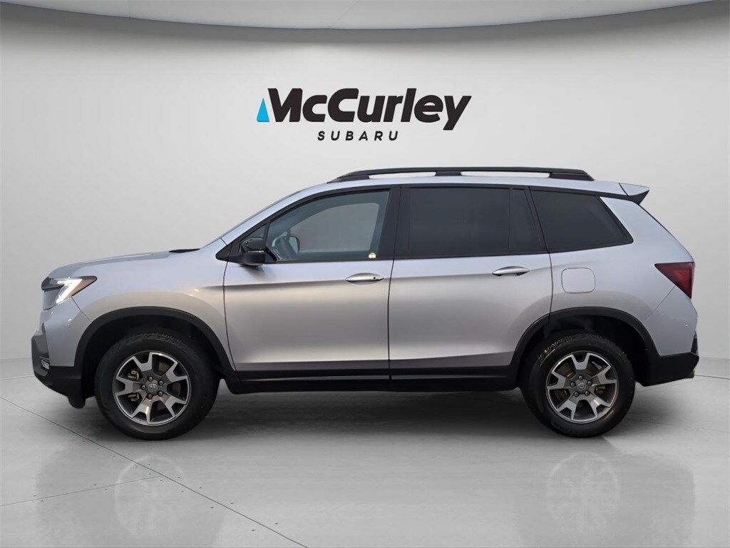 Certification Program Details: This vehicle is McCurley Certified+ and includes: 5 Year / 100k Mile Powertrain Warranty* Engine, Drive Assembly, Transmission, Seals and Gaskets Coverage* 102pt Mechanical & Appearance Inspection McCurley Advantage- Repel Shield, Loyalty Rewards, Owner App $0 Warranty Deductible 7 Day / 500 Mile Exchange Policy* Certified Value Market Based Pricing 3 Month / 3000 Mile Limited Comprehensive Warranty* Emergency Roadside Service Rental Vehicle, Towing, Travel & Lodging Reimbursement Tire Coverage *See dealer for complete coverage details. Coverage may vary by vehicle and mileage. Lunar Silver Metallic 2022 Honda Passport TrailSport 3.5L V6 24V SOHC i-VTEC AWD